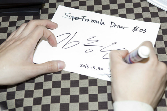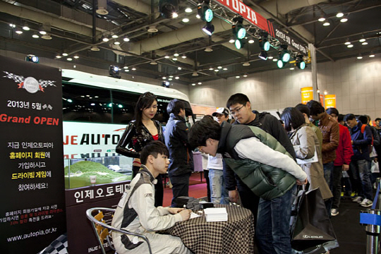 국내 카레이싱대회에서 대활약 중인 인제오토피아 레이싱팀의 김동은 선수가 30일 일산 킨텍스서 열린 2013 서울모터쇼 & 오토모티브위크 모터스포츠 특별관에서 관람객을 대상으로 사인회를 진행하고 있다.