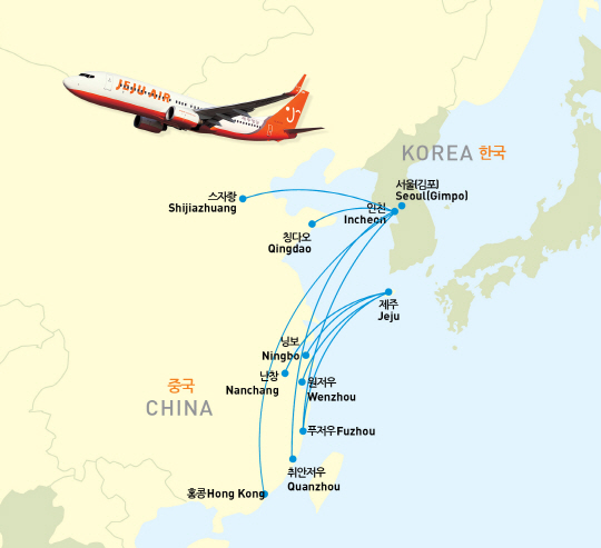 제주항공은 이들 도시 외에도 올 상반기 중 제주와 부산 등을 기점으로 하는 중국 내 3~4개 도시에 대해서 신규 취항을 검토하고 있다.