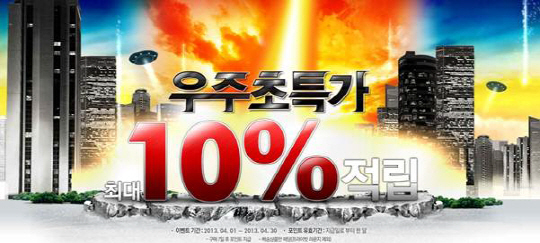 위메프의 '우주 초특가' 적립 이벤트는 위메프가 지난 1월부터 실시한 5% 적립 혜택의 연장선상으로 매주 특정 카테고리의 상품 구매 시 5%를 추가 제공해 최대 10%의 포인트 적립 혜택을 받을 수 있다. 이와 함께 매일 오전 10시 오늘의 위메프 추천딜을 트위터와 페이스북으로 공유한 선착순 1천명에게 500 포인트를 증정하는 깜짝 행사도 4월 31일까지 진행한다.
