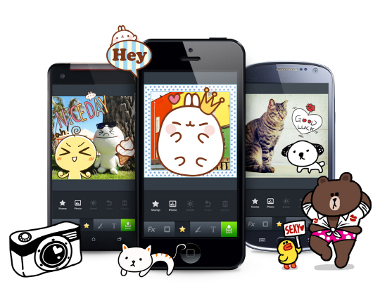 라인이 유명 캐릭터나 웹툰 작가의 스티커를 구입해 '라인 카메라'에서 사용할 수 있는 라인 카메라용 '스티커 샵'을 오픈했다.