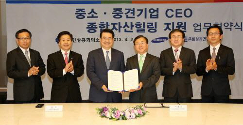 또, 중소·중견기업 재무구조 개선을 위한 자문서비스도 제공하기로 했다. 중소기업 경영주치의로 이름난 대한상의 중소기업 경영자문단과 연계해 자금운용에 어려움을 겪고 있는 중소기업에 기업공개(IPO), 기업 금융 등 중소기업 자금조달에 관한 운영 솔루션을 마련해주고, M&A나 부동산 투자전략에 대한 자문을 시행할 예정이다.