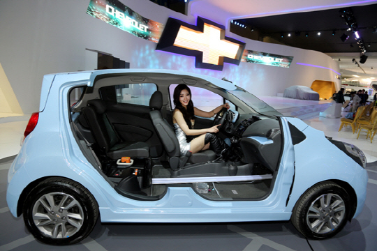 일산 킨텍스에서 7일까지 열리는 '2013 서울모터쇼'의 볼거리엔 단연 스파크 EV 모델이 꼽힌다.