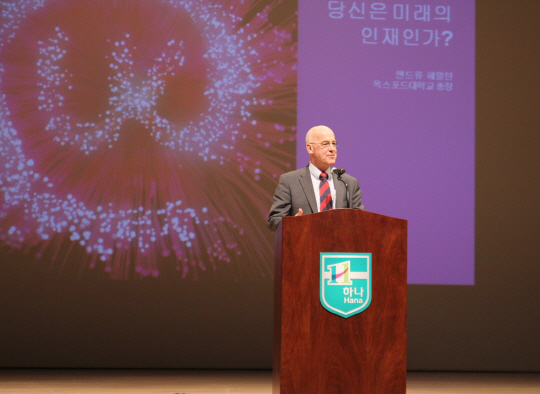 영국 옥스퍼드대 앤드류 해밀턴 총장은 지난 4일 오후 서울시 은평구 소재 하나고등학교(www.hana.hs.kr)에서 '당신은 미래의 인재인가?'라는 주제로 특별 강연을 실시했다.