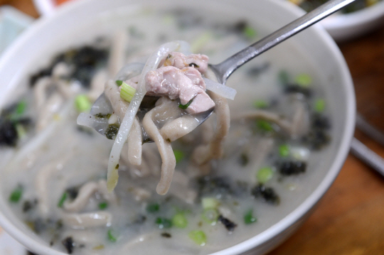 메밀면도 맛을 내는데 빼놓을 수 없다. 메밀은 본래 점성이 적어 면을 뽑기가 쉽지 않다. 그럼에도 이 집은 100% 순메밀가루만을 쓴다. 때문에 가벼운 젓가락질에도 면이 툭툭 끊긴다. 젓가락보다 숟가락으로 떠 먹는 게 더 편할 정도다.