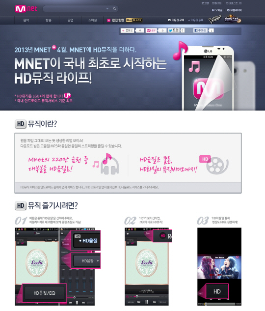 CJ E&M은 엠넷닷컴 모바일 앱 사용 비율이 점차 증가함에 따라, 모바일 앱을 이용하는 고객들에게 보다 양질의 생생한 음악을 선보이기 위해 HD뮤직을 런칭했다. HD뮤직 런칭과 함께 국내 업체 중 가장 높은 전송률인 320kbps (Kilobits per Second)로 음원을 제공, 모바일에서 고음역대 및 저음역대까지 모두 표현해 세밀하고 풍부한 음질로 스트리밍 서비스을 할 예정. 특히 CJ E&M은 'LG유플러스'와 손잡고 LG유플러스 고객 전용 월정액 상품 'HD스트리밍 프리'를 출시, 가입시 별도의 데이터 이용료 없이 고음질 음원 듣기 서비스를 무제한으로 이용할 수 있도록 했다.