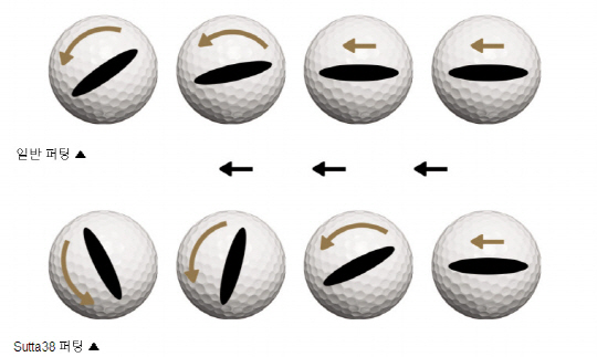 타구와 즉시 회전하는 'SUTTA38' 은 직진성을 높여 주기 위해 설계된 딤플기어 공법으로 접지력을 높인 특수가공의 일체형 페이스 돌기는 퍼팅의 접지력을 극대화하여 직진성을 최대한 향상 시킬수 있다.