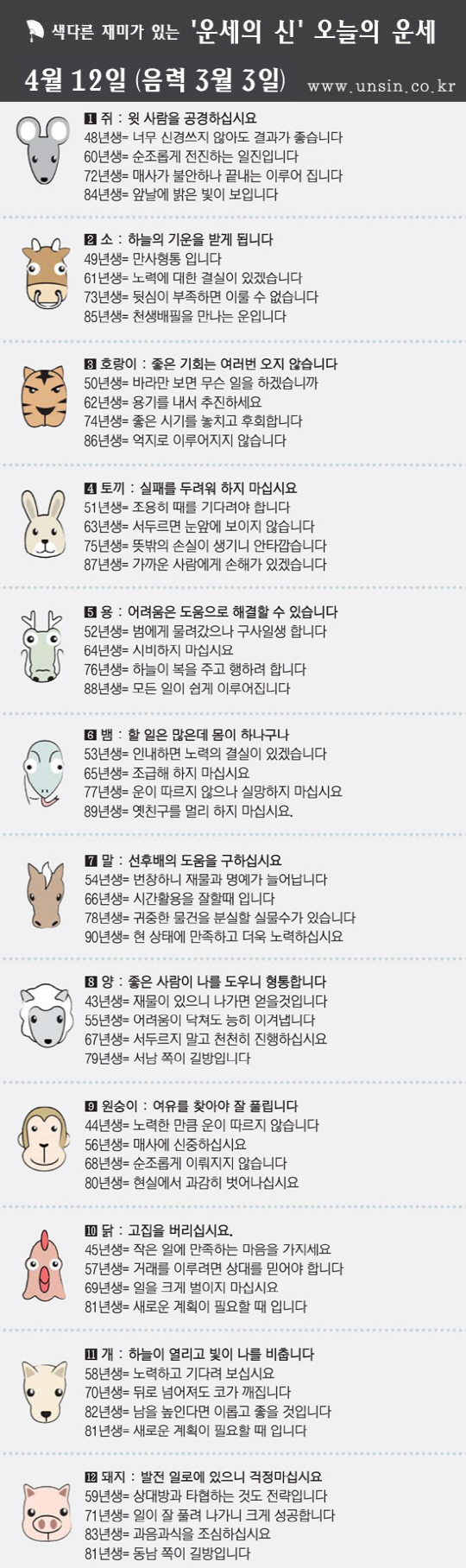 [직장인을 위한 오늘의 운세] 2013년 4월 12일 금요일(음력 3월 3일)