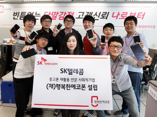SK텔레콤과 SK행복나눔재단이 출연해 설립한 '(재)행복한에코폰'은 중고폰 재활용 활성화를 통해 환경을 보호하고, 취약계층 대상으로 양질의 안정적인 일자리를 제공하는 등 사회적 가치를 제공하며, 2014년에는 예비 사회적기업 지정을 추진할 예정이다.