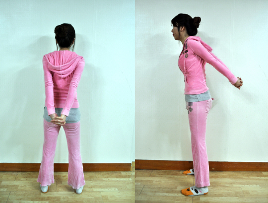③ 천천히 ①번 자세로 돌아온 후 반대편도 동일하게 반복한 후, 왼손과 오른손의 역할을 바꿔 다시 진행한다.