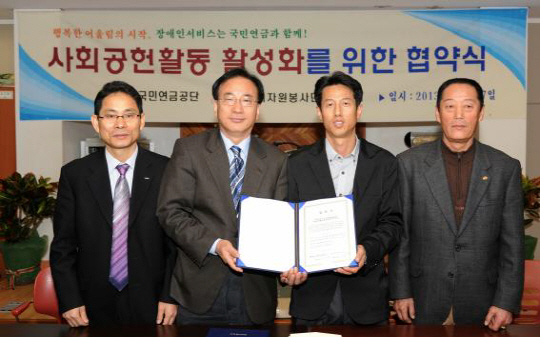 또한, 국민연금공단은 용인시 자원봉사단체협의회와 협약을 체결하고 앞으로도 장애인을 위한 사회공헌활동을 더욱 확대해 나가겠다고 밝혔다. [소비자인사이트/스포츠조선] 송진현 기자 jhsong@sportschosun.com