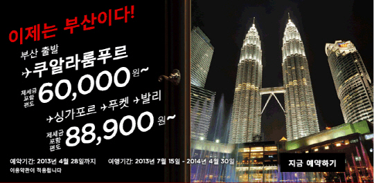 저가항공사 에어아시아가 오는 7월 '부산~쿠알라룸푸르' 노선 신규 취항 기념으로 편도 항공권을 6만원에 판매한다.