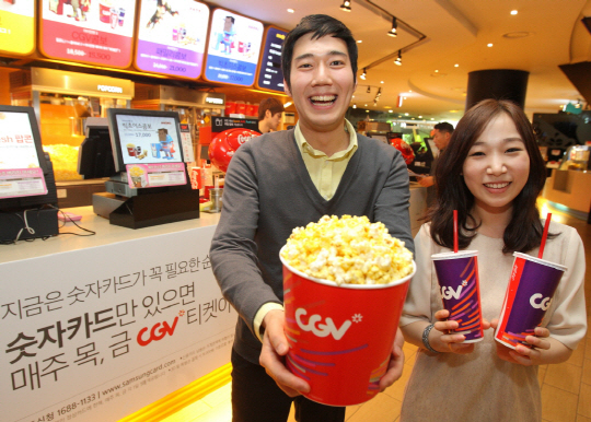 특히, 행사기간 동안 숫자카드를 이용해 영화 예매를 하면 동반 1인 무료 관람 혜택과 함께 8,500원 상당의 CGV 콤보세트 (팝콘, 음료)도 2천원에 제공한다.
