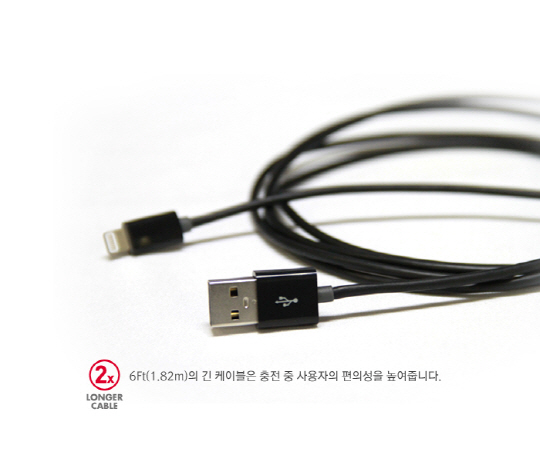 기본적으로 제공되어 사용되는 데이터케이블은 1m 길이가 보통적이지만, 맥컬리의 mSyncableL6 는 6ft(1.8m) 길이의 제품으로 더욱 길어진 케이블길이로 충전중 활용범위가 넓어지는것이 특징. 맥컬리 mSyncableL6는 블랙색상의 3mm 굵기의 케이블을 채택하여 튼튼하게 제작됐고, 단선을 최소화 하기위해 케이블과 커넥터사이는 회색의 TPU재질로 견고하게 쉴드 마감됐다.