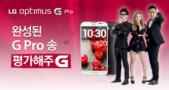 LG전자는 영상 공개와 함께 'G Pro Song' 평점 이벤트를 진행한다. 'G Pro Song' 평점 이벤트는 소비자들이 심사위원이 되어 세 가수가 부른 노래를 듣고 점수를 주는 방식이다. 4월 22일부터 내달 1일까지 '옵티머스 G Pro' 마이크로사이트(http://www.lgmobile.co.kr/event/optimusGpro/Gprosong.jsp)에서 진행되며, 참가자에게는 추첨을 통해 '옵티머스 G Pro' 등 경품을 증정한다.