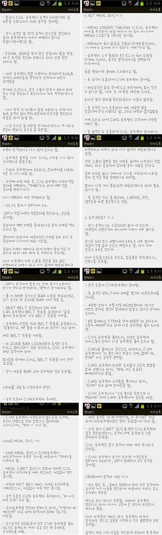 이 밖에도 "에어컨이 고장 난 것 아니냐"등의 기내 환기와 실내 온도에 대한 불만을 표출했으며, 벨트 착용에 대해서도 몸을 못 돌린다는 이유를 들어 거부한 내용이 세세하게 적혀있다.