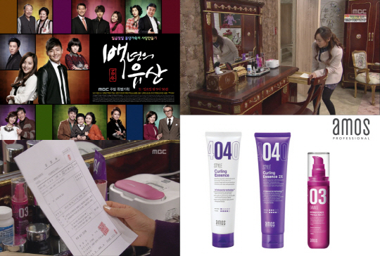 헤어 살롱 전문 브랜드 아모스프로페셔널(www.amoshair.co.kr)이 20%대의 시청률로 동 시간대 1위를 유지하며 인기리에 방영중인MBC 주말 특별기획드라마 '백년의 유산'에 자사 제품을 협찬했다고 밝혔다.
