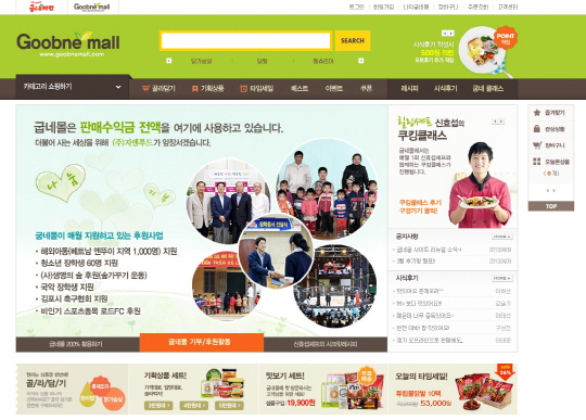 굽네치킨으로 잘 알려진 ㈜지엔푸드(대표 홍경호)는 최근 새롭게 리뉴얼 한 닭가슴살 전문 쇼핑몰 '굽네몰' 홈페이지(www.goobnemall.com)를 통해 판매 수익금 전액을 청소년 장학금, 베트남 아동 지원, 비인기 스포츠 후원, 생명의 숲 후원 등에 사용한다고 밝혔다.