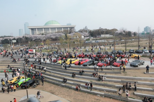 이는 21일 '페라리 클럽 오브 코리아'의 정기 모임을 위해 회원들이 차를 끌고 삼삼오오 모였던 자리. 이중 한 회원은 자신의 블로그에 "벚꽃놀이 피하려고 일주일 뒤로 모임을 미뤘는데 벚꽃이 늦게 피는 바람에 수많은 인파가 모였다"며 "잠시 자리를 비운 사이 차량 기스, 오염, 심지어 사이드 미러 파손도 있었는데 좋은 자리인 만큼 다들 즐거운 마음으로 넘겼다"고 전했다. 그는 이날 모인 차량은 페라리 458 스파이더, 458이탈리아, F430, F430스파이더, 테스타로사,마나렐로, 360 모데나, 360 스파이더, 캘리포니아, 무르시엘라고 LP640, 아벤타도르, 가야르도, G바겐 등이라고 덧붙였다.