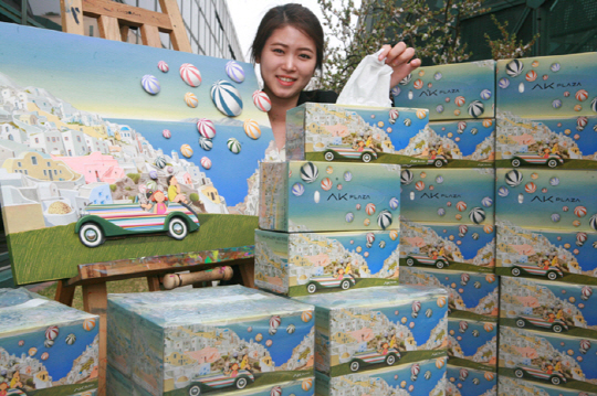 AK플라자 평택점 개점 4주년(4월24일)을 맞아 '생활 속 작은 갤러리'를 컨셉트로 유명작가와의 협업을 통한 아트 마케팅에 나선다. 박현웅 작가의 작품 '알렉산드리아의 토요일'을 그대로 입힌 '아트 콜라보레이션 티슈'를 제작했다. 박현웅 작가는 입체적인 나무판 위에 따뜻하고 밝은 색채의 동화적 환상을 그려내는 작가다. 박현웅 작가 아트 콜라보레이션 티슈(6입)는 4월25일부터 30일까지 1만원 이상 구매한 고객을 대상으로 선착순 2400명에게 증정한다.