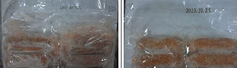 | 변조 전 소시지 유통기한 표시형태(왼쪽)와 변조후 모습. 사진제공=식약처 |