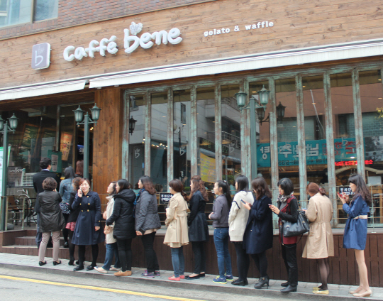 서울 청담동에 위치한 카페베네 매장에서 25일 오후 5시 5분부터 진행되는 카페베네 4만잔 무료커피제공 행사에 참여하기 위해 사람들이 줄을 서고 있다. 창립 5주년을 맞은 카페베네는 그 동안 고객 성원에 대한 감사의 마음을 전달하고자 총 4만 잔 무료 커피를 준비했으며, 전국적인 이벤트를 통해 새롭게 업그레이드한 카페베네의 미디어 로스팅 커피도 선 보인다는 계획이다.