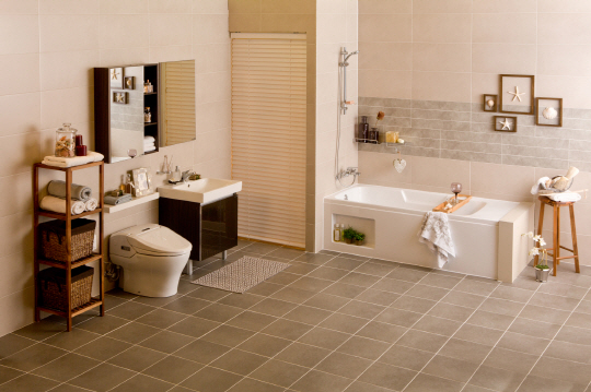 한편, '아델' 시리즈는 최근 욕실 인테리어 트렌드를 최대한 반영한 제품이다. 현대인에게 욕실공간은 생리현상을 해결하는 1차 기능뿐 아니라 뷰티와 힐링까지 이루어지는 공간으로 재조명 되고 있다. 이에 따라 '아델' 시리즈는 욕실의 휴식 기능을 강조하기 위해 화이트 톤의 위생도기에 브라운 톤의 수납장을 매치해 편안하고 차분한 느낌을 연출했다. 특히, '아델' 시리즈는 욕실 아이템들을 효율적으로 비치할 수 있도록 불필요한 장식을 최소화함과 동시에 다양한 수납 공간을 확보했다. 상부장과 거울을 일체형으로 디자인 해 공간 활용도를 높였다. 또한, 욕조의 한 켠에 작은 홈을 만들어 숨겨진 공간도 활용 할 수 있도록 배려한 것이 눈에 띈다. 양변기 위나 샤워기 주변에도 선반을 배치하는 등 실용성을 극대화 했다.