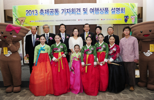 ◇보성군과 축제공동 기자회견(뒷줄 왼쪽 세번째 문경시 고윤환 시장)