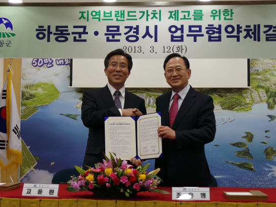 ◇하동군과 업무협약식 체결(왼쪽 문경시 고윤환 시장)