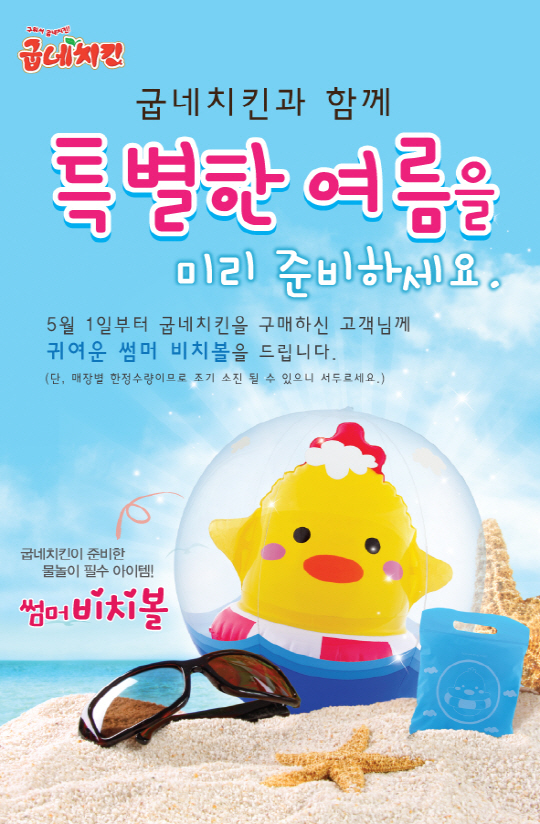오븐구이 치킨 프랜차이즈 굽네치킨(www.goobne.co.kr)이 가정의 달을 맞아 오는 5월 1일부터 물놀이용 썸머비치볼를 증정하는 이벤트를 실시한다.