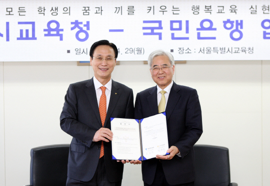 KB국민은행(은행장 민병덕/www.kbstar.com)은 지난 29일 서울특별시 교육청과 모든 학생의 꿈과 끼를 키우는 행복교육 실현을 위한 교육기부 협약을 체결했다.