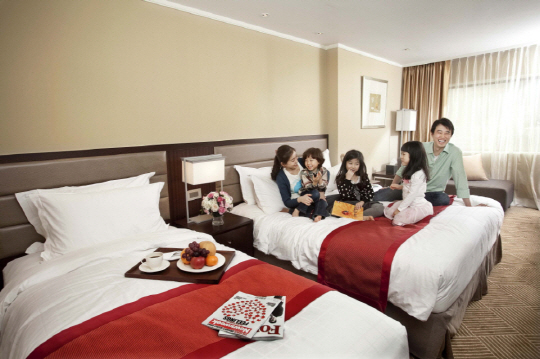 그랜드 앰배서더 서울=해피 패밀리 패키지를 선보인다. 더블베드와 싱글베드가 구비된 '디럭스 패밀리룸'에서의 1박, 앤 델리 베이커리 30% 할인권, 과일 스무디와 호텔에서 10분 거리에 있는 서울애니메이션센터 캐릭터 체험 프로그램 3인 이용권이 포함돼 있다. 21만 2300원부터(부가세 10% 별도. 02-2270-3111