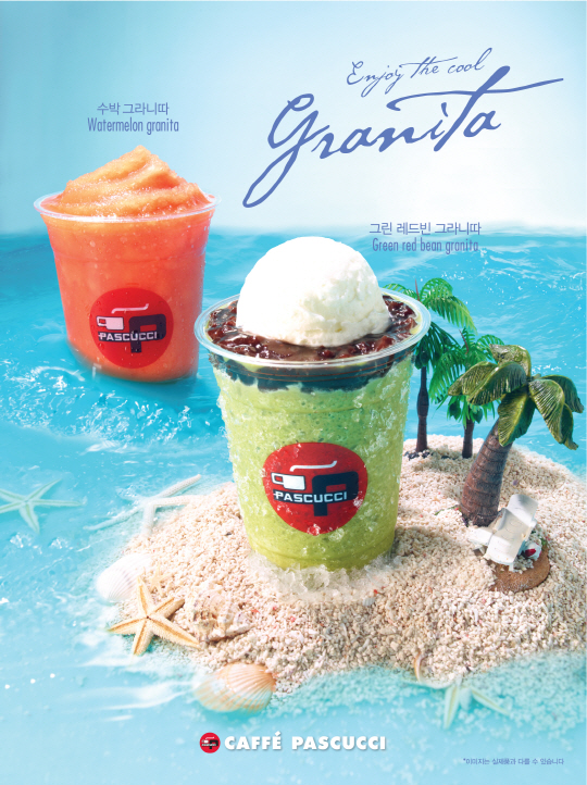 올 여름을 겨냥해 파스쿠찌가 야심차게 내놓은 신제품은 '레드빈 그라니따' 시리즈 3종과 '수박 그라니따' 등 4종으로 시원한 얼음 음료를 컵에 담아 혼자서도 간편하게 즐길 수 있도록 한 '컵빙수' 컨셉이 특징이다.