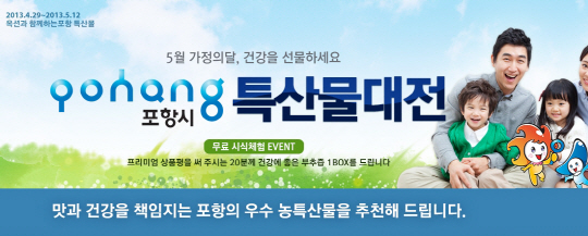 국내 대표적 온라인마켓플레이스 옥션(www.auction.co.kr)이 지역 경제 활성화 및 경쟁력 강화를 위해 포항의 우수 농특산물을 선보이는 '포항특산물대전'을 실시한다.
