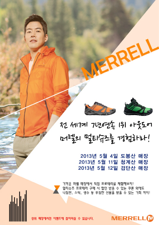자세한 매장 별 행사 일정은 머렐 페이스북(www.facebook.com/merrell.kr) 또는 블로그(blog.naver.com/merrellblog)에서 확인할 수 있다.