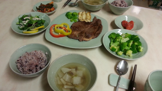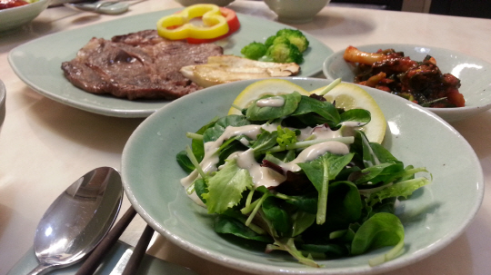 그릇이 얼마나 테이블 분위기를 확 바꿔주는지 실감할 수 있었다. 스테이크도 특별한 조리를 한 게 아니었는데, 한정식집 고급 코스같은 느낌을 안겨준다.