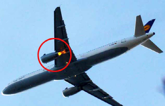루프트한자 소속 항공기가 이륙직후 한쪽 엔진에 불이 붙어 승객들이 공포에 떨었다.