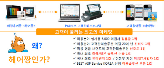 미용실고객관리프로그램 헤어짱과 피부미용실 및 네일샵고객관리프로그램 뷰티짱을 사용하고 있는 회원사 리스트만 보더라도 "명품 브랜드들이 선택한 브랜드"라고 알려진 헤어짱&뷰티짱의 브랜드 파워의 진면목이 유감없이 발휘되고 있는 셈이다.