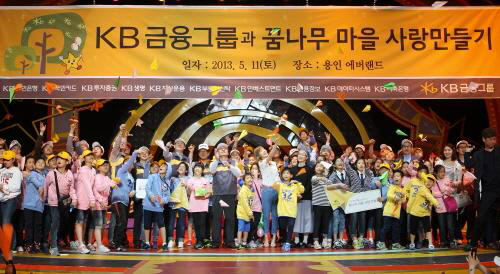KB금융그룹 은 지난 11일 용인 에버랜드에서 어윤대 회장을 비롯한 KB금융그룹 임직원 500여명이 참가해 서울시 응암동 소재 꿈나무마을 알로이시오 초등학교 어린이 400여명과 놀이기구 체험 및 공연, 동물 생태 관람 등 'KB금융그룹과 함께하는 꿈나무마을 사랑 만들기' 행사를 실시했다고 밝혔다.