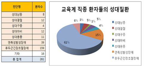 하루 평균 5시간 이상 수업, 진학상담, 학부모 상담 등 끊임없이 말을 해야 하는 교사들은 여러 가지 목소리 질환에 시달린다. 교사는 가수, 배우 등과 함께 목소리 질환을 가장 많이 앓는 직업군으로 분류돼 있다. 일반인에 비해 성대질환에 걸릴 확률이 5배 이상 높다. 흔히 교사들의 고질병으로 성대결절을 생각한다. 하지만 예송이비인후과에서 교사 261명을 분석한 자료를 살펴보면 근긴장성발성장애와 같은 기능성 질환이 더 많은 것으로 나타났다.