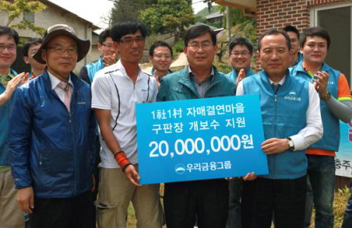 우리금융그룹(회장 이팔성, www.woorifg.com)은 농번기 일손부족으로 어려움을 겪고 있는 농촌지역을 위해 지난 2009년 자매결연을 맺은 충북 충주시 소재 삼방마을에서 임직원 자원봉사자 20여명이 사과접과 작업, 마을 구판장 개보수 지원 등 농촌 일손돕기 자원봉사활동을 실시한다고 14일 밝혔다.