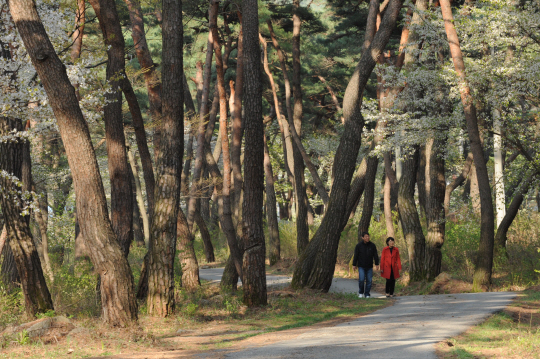 봉곡사 입구 솔숲 진입로에 들어서면 탄성부터 터져 나온다. 숲에는 일제 때 연료용 송진을 채취했을 만큼 아름드리 소나무가 밀생해 있다. 이른바 치산(治山)도 잘 해서 숲이 깔끔하게 단장돼 있다.