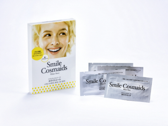 스마일 코스메틱의 오랄케어 제품은 치아 착색을 집중적으로 관리할 수 있다. 소닉 웨이브 클리너(32000원)는 치아의 축적된 착색과 설태를 말끔히 닦아낼 수 있는 진동 칫솔과 혀 클리너로 구성되며, 치약이 치아 구석구석까지 닿을 수 있게 하는 별모 양의 칫솔모가 착색 제거 효과를 높인다. 오래 축적된 치아 착색 관리를 위해서는 화이트 시트 (15000원)를 활용하면 효과적이다. 치과에서 사용하는 검증된 화이트닝 성분으로 치아에 착색된 오염을 깨끗하게 제거해준다.