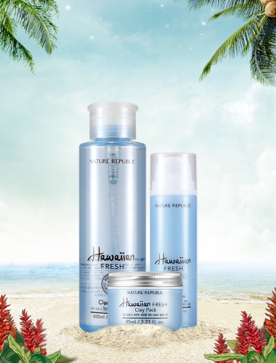 이 중 '하와이안 프레시 클리어 토너'는 닦아내는 타입의 대용량 제품(400ml)으로 피부를 편안하게 진정시켜 주며 유분과 피지를 관리해 매끄럽게 정돈해준다. 끈적임 없이 산뜻하게 마무리 되며 펌핑 용기로 되어있어 사용이 더욱 간편하다. '하와이안 프레시 클리어 세럼'은 실키한 사용감으로 피부결을 부드럽게 개선시켜 주며 모공 수렴을 도와 탄력을 부여한다. 또한 피지 분비를 조절해 피부를 번들거림 없이 보송하게 유지시켜 준다