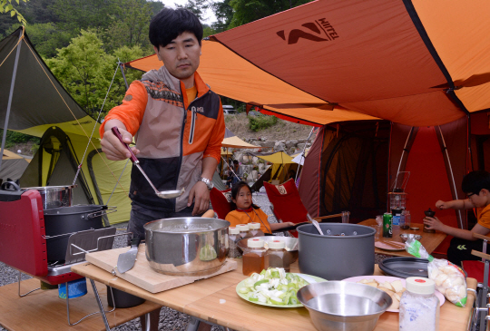 최근 국내 캠핑인구가 크게 늘고 있는 가운데 '캠핑대세'를 실감할 수 있는 명품 캠핑이벤트가 지난 18~19일 경기도 가평군 설악면 가일리 소재 늘푸른 쉼터캠핑장에서 펼쳐졌다. 아웃도어 브랜드 밀레가 주최하고 스포츠조선이 주관한 '밀레와 스포츠조선이 함께 하는 진실캠프'가 바로 그것. 이번 진실 캠프에서는 '캠핑을 통해 함께 추억을 나누고 싶은 이에게 보내는 메시지' 응모 당첨자 30가족 120명을 청정대자연 속으로 초청, 다양한 이벤트 속에 따뜻한 가족애와 캠핑의 낭만을 맛볼 수 있는 소중한 체험의 시간을 가졌다. 글=김형우 여행전문 기자 hwkim@sportschosun.com/ 사진=김경민 기자 kyungmin@sportschosun.com
