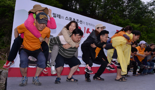 진실캠프'에서 엄마-아빠의 힘자랑 이벤트가 열렸다. 가평=김경민 기자 kyungmin@sportschosun.com / 2013.05.18.