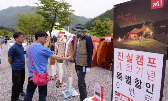 이번 진실캠프의 또 다른 하이라이트, 밀레 캠핑용품 체험 존도 큰 인기를 끌었다. 밀레(www.millet.co.kr)는 현장에서 각종 의류와 캠핑용품을 20~40% 할인가로 판매해 캠핑-등산마니아들에게 알뜰 쇼핑-관람의 기회도 제공했다. 드라마 '야왕'에서 권상우가 입어서 유명세를 탄 '권상우 등산복'을 구입한 신현우 씨(25)는 "평소 가격이 만만치 않아 선 뜻 구매하기 힘들었는데, 진실캠프에서 신제품을 40% 할인가에 구할 수 있어 일석이조의 캠핑이벤트를 즐기게 됐다"고 흡족해 했다.