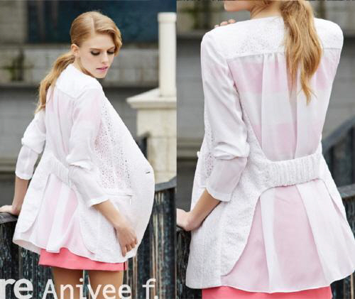 레이스와 쉬폰 소재로 여성스러움과 계절감을 살렸고, 허리비조부분과 소매부분의 신축성이 좋아 편안함까지 갖추었다는 평이다.