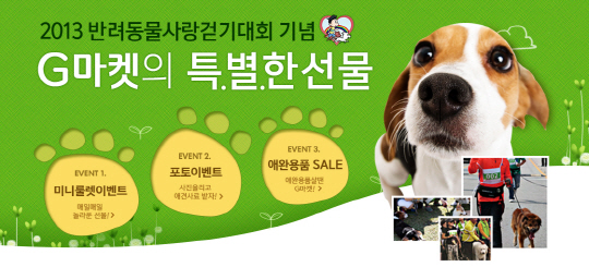 다양한 온라인 이벤트도 진행한다. 오는 6월 9일까지 지마켓 이벤트 페이지에서 미니룰렛 게임에 참여하면 즉시추첨을 통해 지마켓 펫박스, 애완견 사료, 스타벅스 기프티콘, 지마켓 할인쿠폰 등을 경품으로 증정한다. 또한 오는 6월 16일까지 반려동물의 사진을 이벤트 게시판에 올리면 추첨을 통해 사은품을 증정하는 포토이벤트도 진행한다.