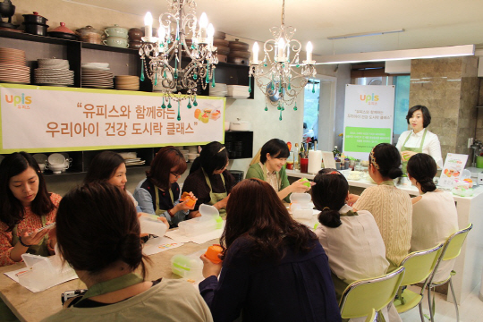 채소 소믈리에 김은경 강사와 함께 진행된 이번 쿠킹 클래스는 '유피스와 함께하는 우리아이 건강 도시락'을 주제로 아이 도시락 메뉴를 직접 만들어 보는 실습 형식으로 진행됐다. 아이들의 편식 메뉴로 손 꼽히는 두부와 감자 등을 도시락 메뉴로 만들어봄으로써 식습관을 개선할 수 있는 방법을 제시하는 시간으로 구성됐다. 쿠킹클래스에서 실습으로 진행된 요리로 유피스 스매쉬 칸칸런치박스의 특징을 살려 샌드위치, 샐러드 등의 메뉴를 구분되어 있는 용기를 활용해 선보였다.