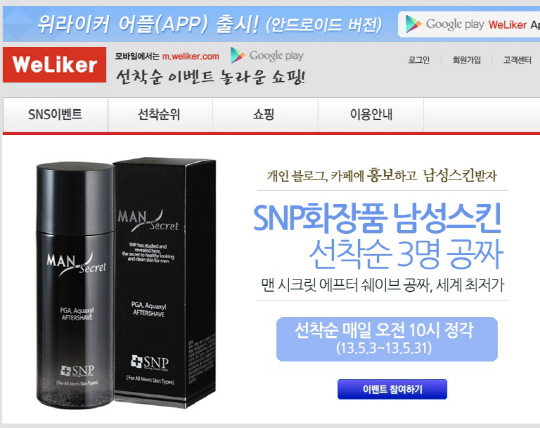 하지만 (주)위라이커(대표 이강민, www.weliker.com / m.weliker.com)가 공식 오픈한 신개념 소셜 모바일 리워드 앱은 남들보다 먼저 선착순으로 입소문을 내면 2만~5만원 상당의 제품을 무료로 받을 수 있는 공짜/특가 구매 쿠폰을 증정하고 있어 경기불황 속에서 한푼이라도 아끼려는 소비자들로부터 주목을 받고 있다.